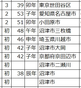 | 住まい | 沼津市(5人)・神奈川(1人)・愛知(1人)東京(1人)・埼玉(1人)・京都(1人) |