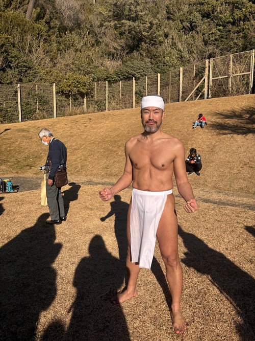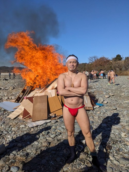 昨年に続き、二度目の神男です。昨年は天候に恵まれましたが、今年はどうなるでしょうか。寒さも波も覚悟の上、全力で臨みます!