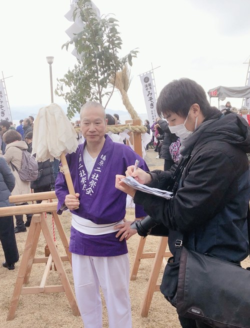 寒中みそぎが好きです。今回は楽しみが2つあります。ペンギンさんのパンを食べること、そして猿田彦役の川島さんを見ることです。